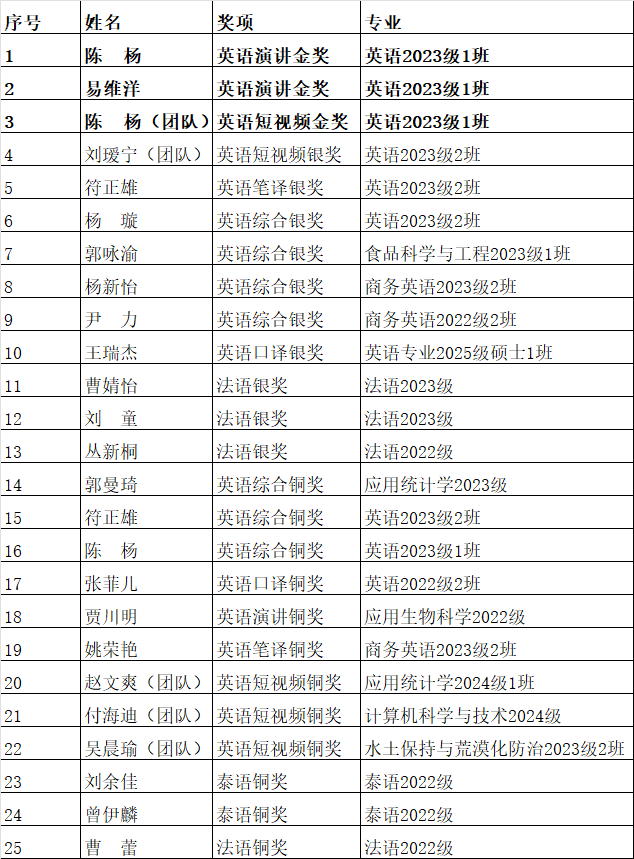 10月31日,2025年“外研社•国才杯”“理解当代中国”全国大学生外语能力大赛云南赛区决赛在大理大学举办。在本次大赛中,我校共有20名学生、5支团队参加了省级决赛,荣获金奖3项、银奖10项、铜奖12项。本次荣获金奖的陈杨、易维洋、陈杨(团队)将代表云南省参加国赛。