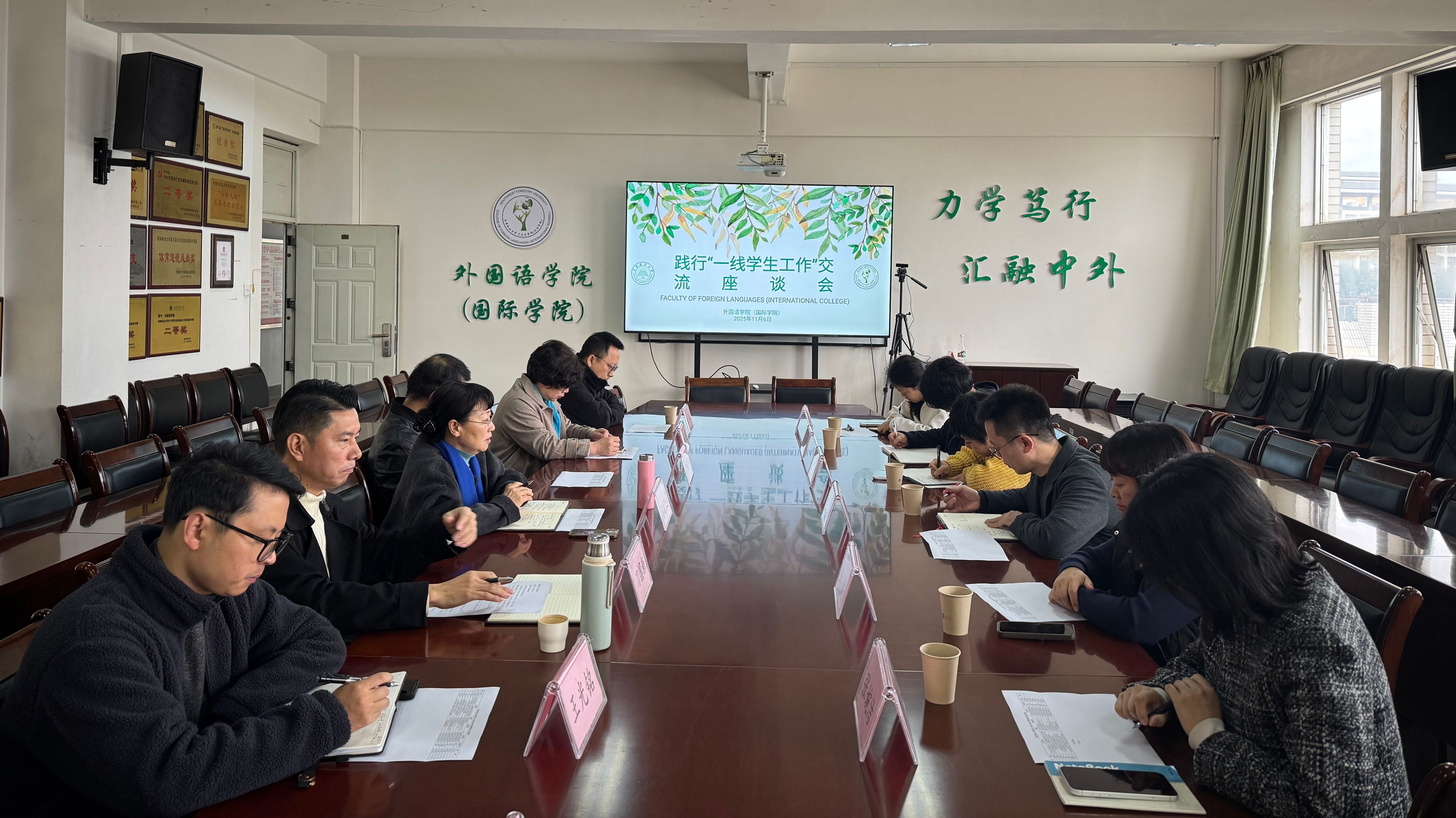11月6日上午,外国语学院(国际学院)在至信楼706会议室成功举办践行“一线学生工作”交流座谈会。会议由学院党委副书记刀国新主持,学院党委书记姜丽红、副院长饶耀平、杨司薇,对外合作交流处副处长、港澳台事务办公室副主任王海涛,亚太森林组织昆明中心、对外合作交流处及外国语学院(国际学院)相关教师参加座谈。