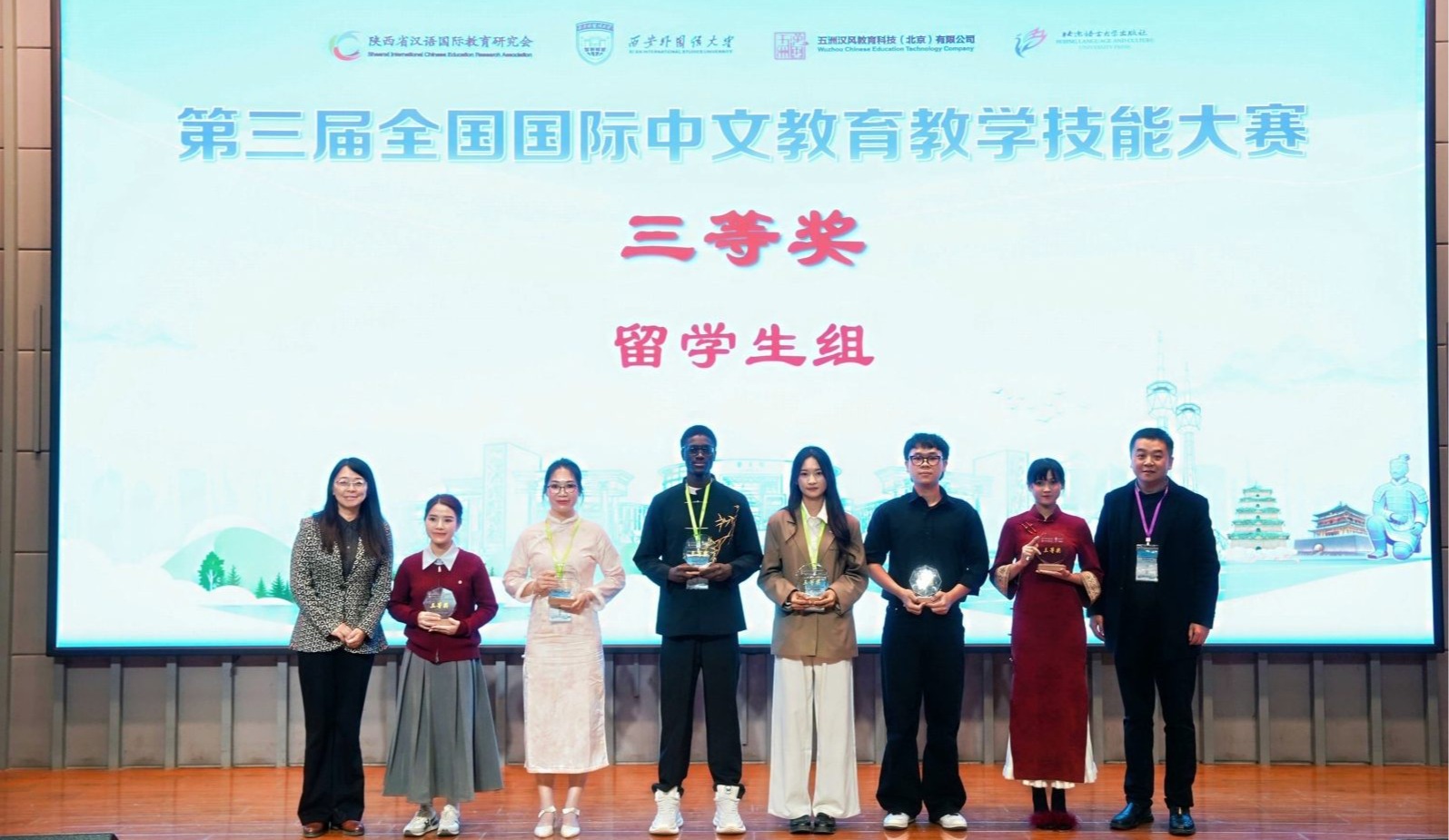 11月21日至23日,第三届全国国际中文教育教学技能大赛在西安外国语大学落幕。我校国际中文教育硕士张婕、汉语国际教育本科马里籍留学生NOMOKO OUMAR(莫南)分别获得研究生组一等奖、留学生组三等奖及语音教学专项奖三项重要荣誉。