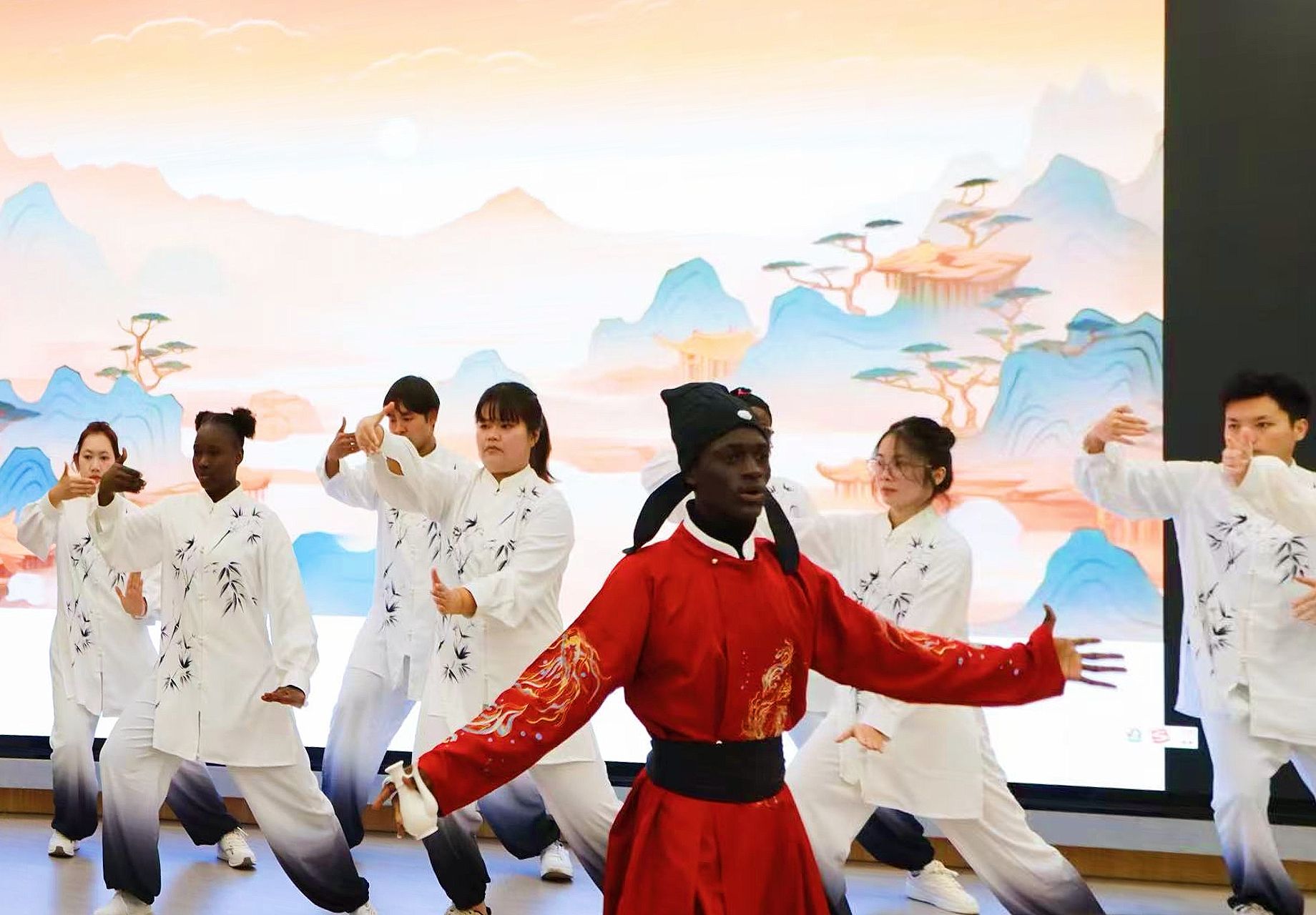 会上,西林学子用朗诵、舞蹈、武术诠释了自己对中华优秀传统文化的解读。留学生代表的文艺汇演“将进酒•武动乾坤”将诗歌的豪情与武术的刚强交融,为现场的观众编织了一幅诗歌朗诵、舞剑、舞狮与太极拳交织的流动画卷,彰显了天人合一,包容万象的东方哲思,在诗与武的共鸣中,见证文化交融的绚丽多姿。